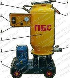 Установка ПБС-200Ат «БРИС 1» – турбулентный пенобетоносмеситель с автоматизированным процессом приготовления смеси. Предназначен для изготовления пеноблоков в стационарных условиях, а также приготовления пенобетона на строительной площадке: заливка стен, полов, крыш. Цены указаны за наличный расчет, безнал – плюс 10%. Оборудование можно удешевить за счет смены технических характеристик или надежности. Производительность – до 2 м3/час. Ёмкость смесительного бака – 200 л. Давление воздуха – 1.8 атмосфер (от 50 л/мин). Тип привода – ременной. Сеть – трёхфазная 380В, 50 Гц. Потребляемая мощность – 5,5 кВт. Габаритные размеры – 1000х750х1600 (~200 кг). Пеногенератор НЕ требуется. Комплект поставки: - пенобетоносмеситель – 1шт; - шланг напорный Ø50, 10 м – 1шт; - технический паспорт; - технический регламент производства пенобетона; - обучение. Цена в зависимости от комплектации (нал): 99 тыс. Установка ПБС-300Ат «БРИС 2» – турбулентный пенобетоносмеситель с автоматизированным* процессом приготовления смеси. Предназначен для изготовления пеноблоков в стационарных условиях, а также приготовления пенобетона на строительной площадке: заливка стен, полов, крыш. * Цены указаны за наличный расчет, безнал – плюс 10%. Оборудование можно удешевить за счет смены технических характеристик или надежности. Производительность – до 2 м3/час. Ёмкость смесительного бака – 300 л. Давление воздуха – 1.8 атмосфер (от 50 л/мин). Тип привода – ременной. Сеть – трёхфазная 380В, 50 Гц. Потребляемая мощность – 7,5 кВт. Габаритные размеры – 1000х750х1600 (~200 кг). Пеногенератор НЕ требуется. Комплект поставки: - пенобетоносмеситель – 1шт; - шланг напорный Ø50, 10 м – 1шт; - технический паспорт; - технический регламент производства пенобетона; - обучение. Цена в зависимости от комплектации (нал): 109 тыс. 1 - бак смесителя; 2 - электродвигатель; 3 - воздуховод; 4 - манометр; 5 – кран для выхода пенобетона; 6 - пульт управления; 7 - основание; 8 – крышка-клапан; 9 – рукоятка.